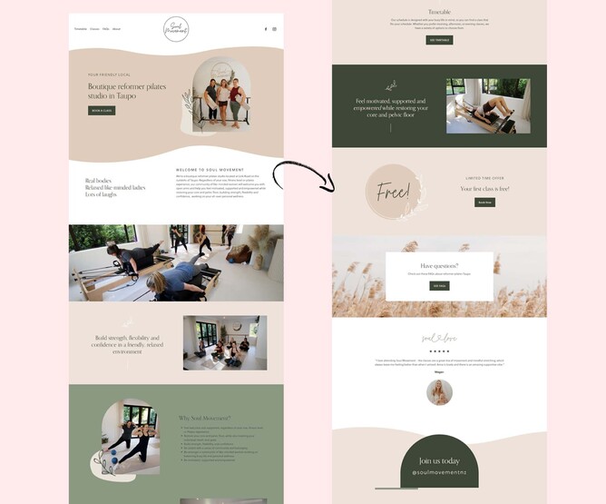 Having fitted out a new reformer pliates studio in Taupo, Soul Movement's Anna Tombleson wanted a new website and set of social media templates to help represent her brand online.