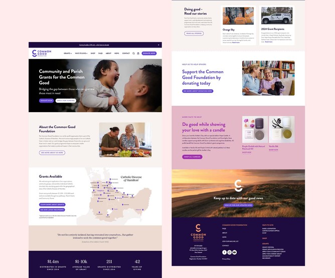 We designed and built a new website in Rocketspark that did just that. We embedded infoodle forms for the grants programme, helped set up a Stripe account to take donations and shop payments, and drafted content that tells the story of the Common Good Foundation and what they do.